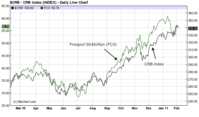 Commodity prices have risen dramatically over the last year, especially in basic agricultural commodities (grains, soy, cotton), certain industrial metals (copper, palladium, rare earth) and lumber. Concise evidence of this rise is seen in the CRB Index, a price index of 19 commodities, including many of those cited; this index has risen 26.3% over the last year, and 31.2% just since late August. Not coincidentally, on August 27, 2010, Federal Reserve Chairman Ben Bernanke gave a speech announcing that a new round of targeted monetary quantitative easing measures were needed and to be expected in the coming months, even though the Fed’s Permanent Open Market Operations (POMO) had begun churning up a few weeks earlier. And thus began a six-month surge in commodity prices, taking the major stock indexes higher for the ride (see Figs 1-6 below).