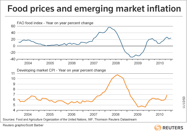 · Egypt: CPI 10.4% Dec 2010, 18.5% yr/yr food inflation (global high);
